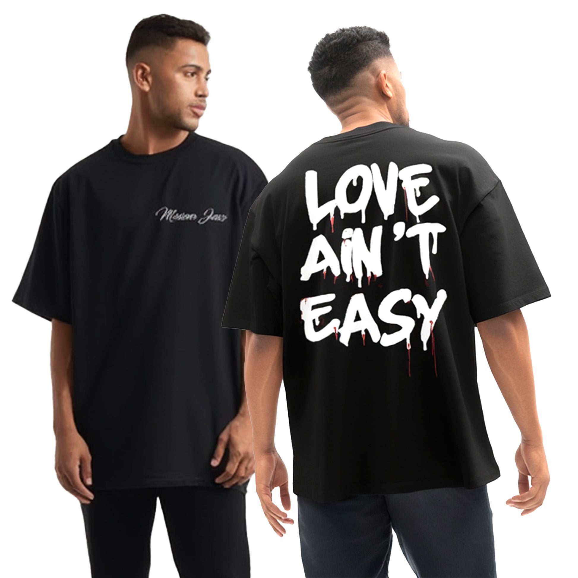 The “Love Ain’t Easy” Oversized T-Shirt speaks for itself with a bold, distressed back graphic that reflects the reality of love, pain, and growth.